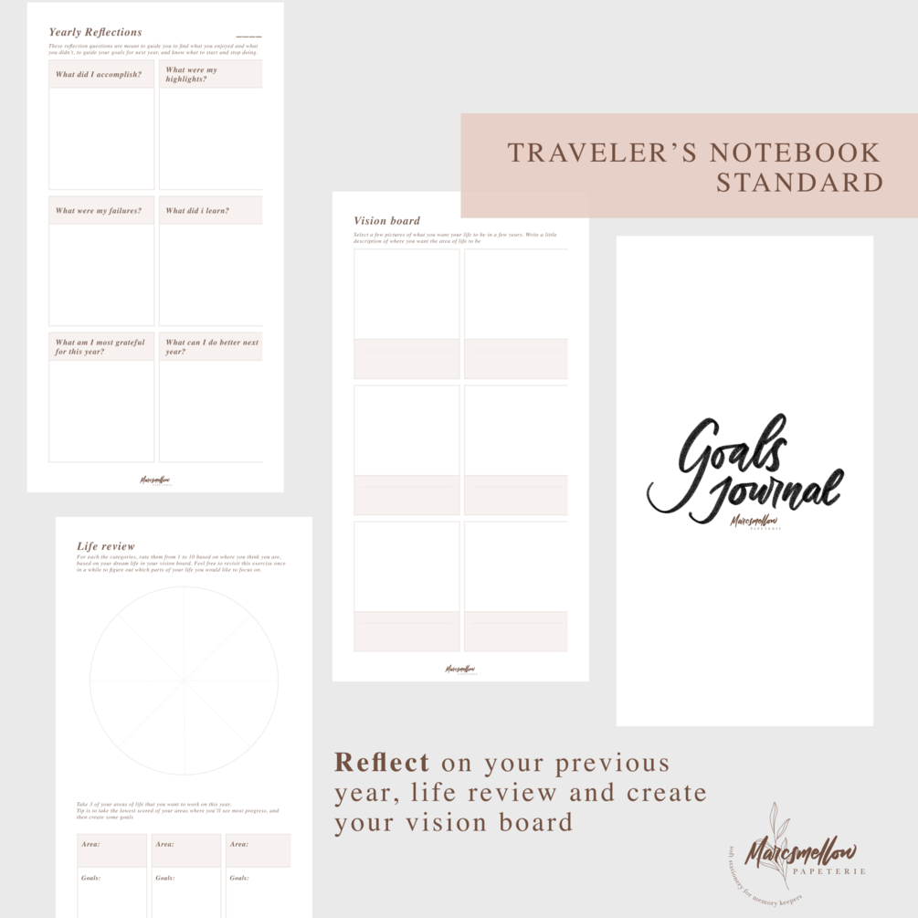 This template is designed to help guide you through reflecting your previous year, to creating your vision board and reviewing your life. It also takes you through setting your long term, yearly and quarterly goals, and eventually to habit tracker and quarterly/weekly/monthly reviews.