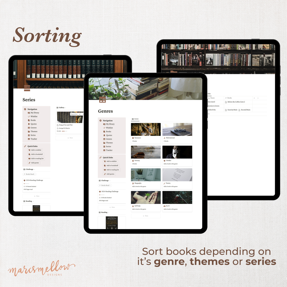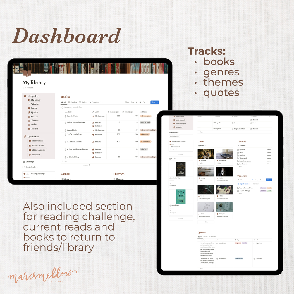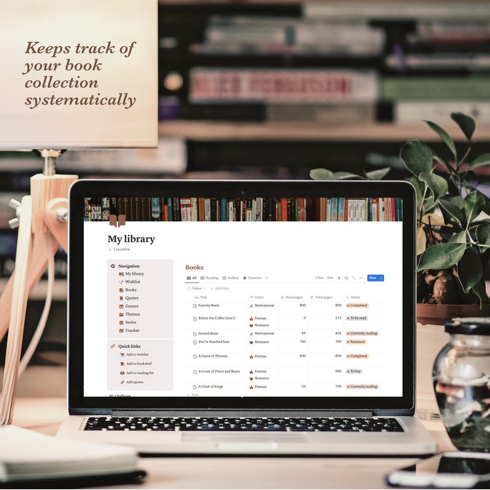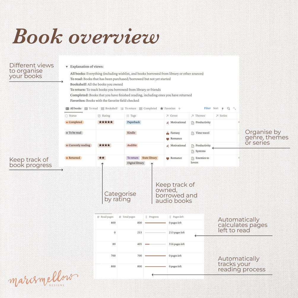 Reading tracker notion template, reading log and tracker to keep your library organised in a cottagecore aesthetic