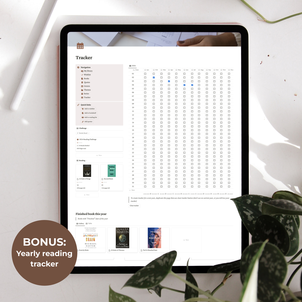 BONUS; included yearly reading tracker, can be duplicated and used year by year.